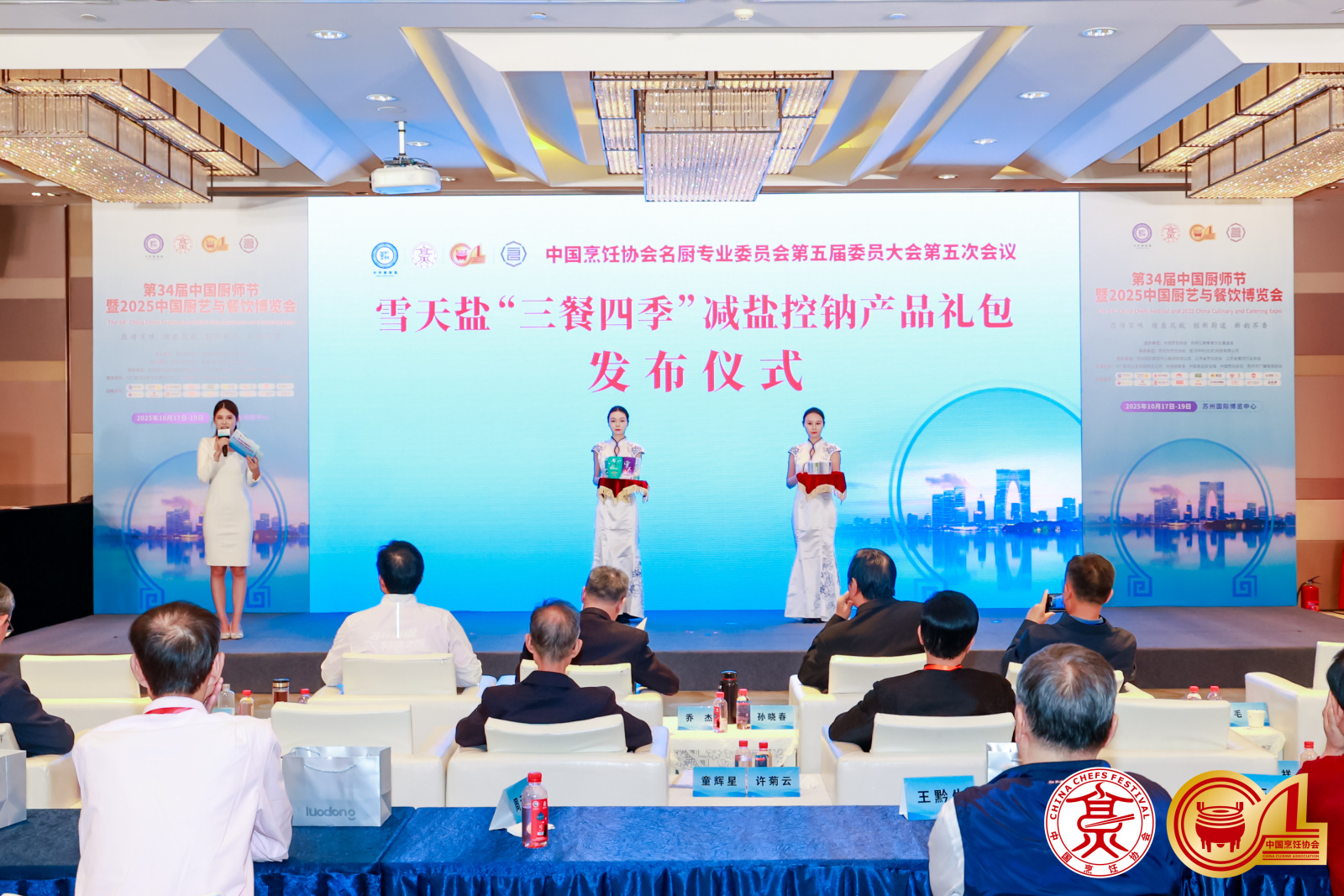 10月18日,雪天盐业携手中国烹饪协会名厨专业委员会及八大菜系代表大师,共同启动“减盐不减味,守护健康中国味”倡议。发布仪式上,雪天盐业党委委员、董事会秘书陈蔚与中国烹饪协会副会长乔杰共同出席,并联手浙菜李林生、鲁菜王子峰、川菜蒋礼中、粤菜麦永安、苏菜段峰、闽菜吴明超、湘菜张竣生、徽菜张秀君八大菜系代表性名厨,标志着餐饮行业在源头减盐、科学用盐层面形成高度共识。湘菜、粤菜、川菜、苏菜等流派名厨结合本系特色,阐释在保持传统风味基础上推进科学控钠的实践路径,形成八大菜系认可的“减盐不减味”雪天盐解决方案,为行业健康转型提供示范。