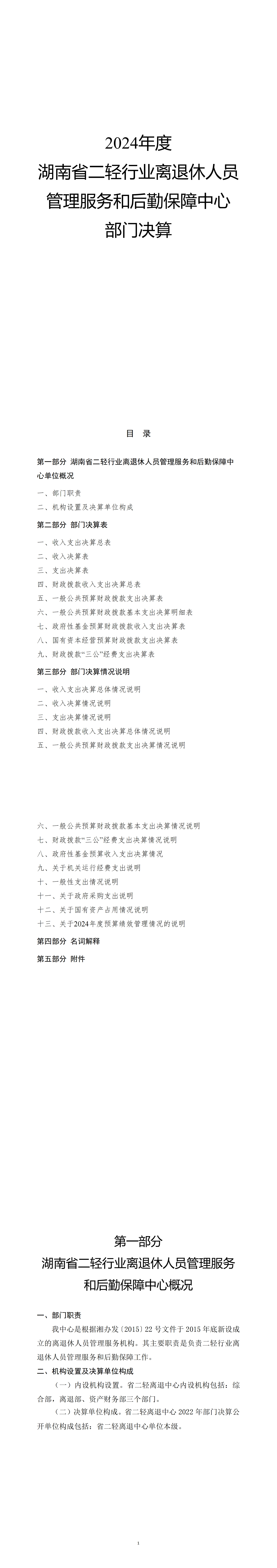湖南省二轻行业离退休人员管理服务和后勤保障中心2024年度部门决算公开说明