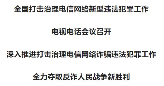 全国打击治理电信网络新型违法犯罪工作电视电话会议30日在京召开。会议强调,要深入贯彻落实习近平总书记重要指示精神和党中央决策部署,坚持“四专两合力”总体思路,以落实反电信网络诈骗法和中办国办《关于加强打击治理电信网络诈骗违法犯罪工作的意见》为契机,以减少人民群众财产损失为目标,全面加强打防管控各项措施,推动打击治理工作不断迈上新台阶,确保电信网络诈骗犯罪多发高发态势得到有效遏制,全力夺取反诈人民战争新胜利,以实际行动彰显主题教育成效。